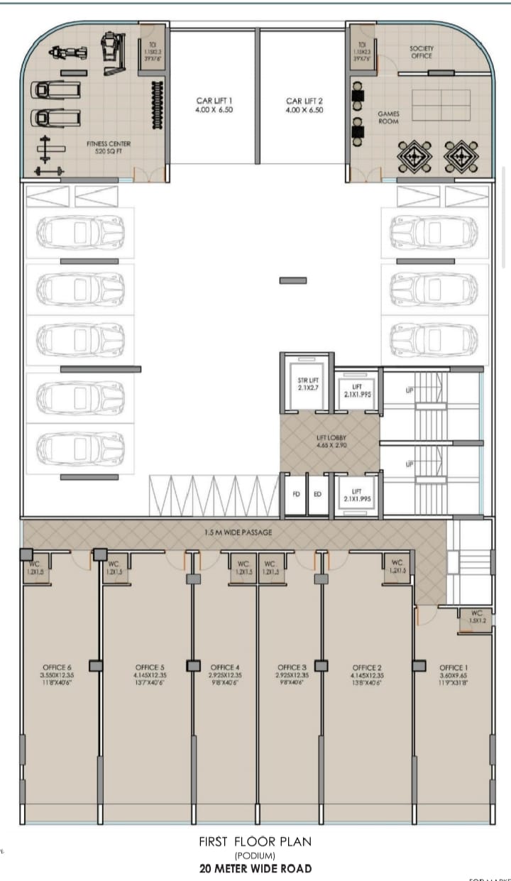 • First Floor: Dedicated office spaces with ample natural light and modern facilities.